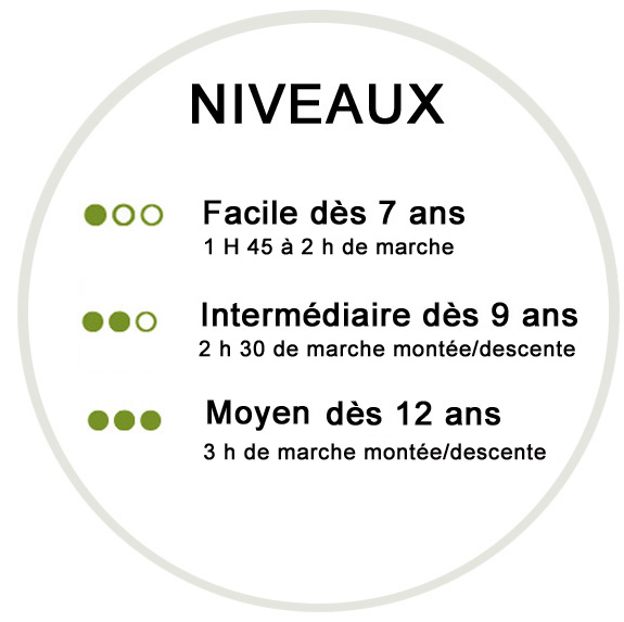 - Les enfants sont les bienvenus, assurez-vous qu’ils aient envie de marcher, à partir de 7 ans (sorties faciles).